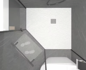 - Shower Tray: The tray itself is the waterproofing layer. It is a single, factory-produced component with no seams and no on-site application of membranes. The only seal is the plumber’s connection to the drain.