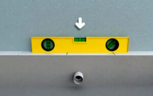 - Use the spirit level on the floor where the tray will sit.