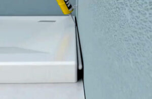 - Put a continuous, even line of good quality bathroom silicone seal.
