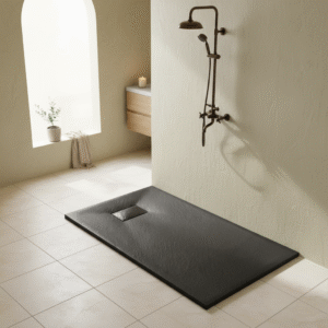 Think about the physics. A cast iron tray is a massive piece of metal. It’s a giant heat sink. It actively pulls warmth away from your feet, creating a jarringly cold experience, especially in the winter. The surface is coated in enamel, which is essentially fused glass. It’s hard and non-porous, but it’s also incredibly slippery when wet and soapy. In contrast, an SMC (Sheet Molding Compound) tray is a polymer composite. It’s an insulator, not a conductor, so it feels neutral and warm to the touch, just like the rest of your bathroom. More importantly, the high-pressure molding process allows us to create intricate, deep textures—like natural slate—directly into the surface of the tray. This isn’t a coating; it’s part of the tray itself, providing certified anti-slip performance and a much more pleasant tactile sensation.